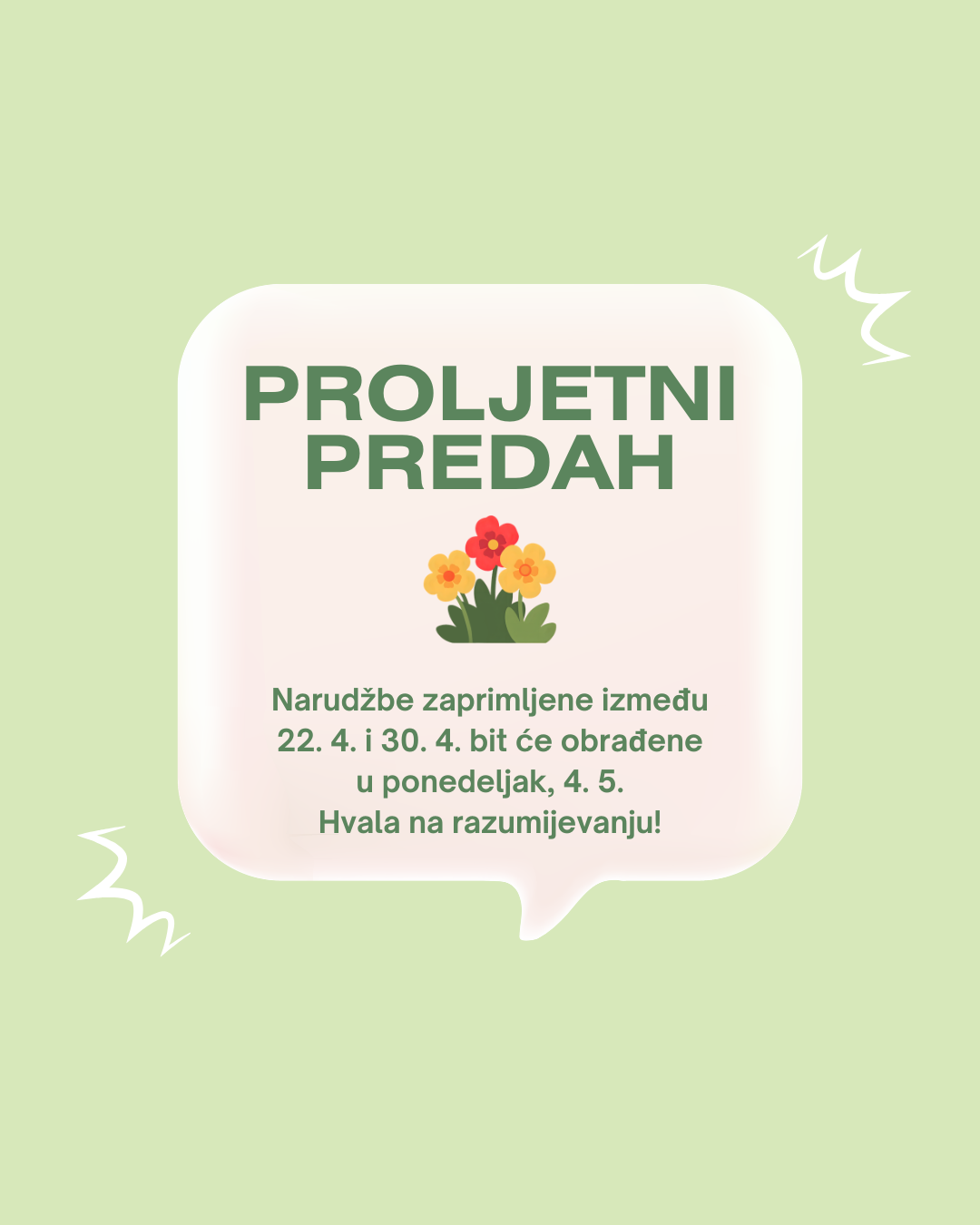 Naručene proizvode poslat ćemo na Vašu adresu još istog dana odnosno u roku 1-2 radnih dana nakon zaprimljene narudžbe. Kada paket predamo kurirskoj službi DPD, primit ćete na Vašu e-adresu obavijest o predanoj pošiljci. Dostavu paketa možete očekivati sljedeći dan nakon primitka obavijesti, raspored dostave za otoke/mjesta koja mostom nisu povezana s kopnom, možete pogledati ovdje.